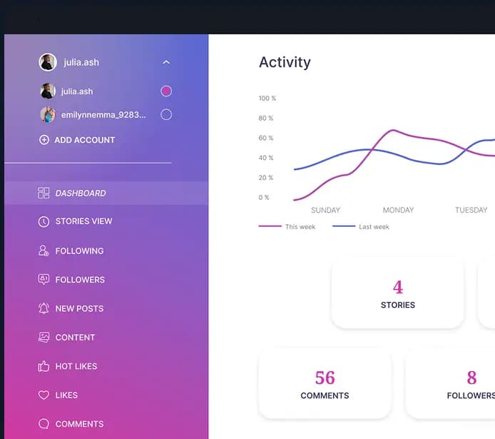アカウントを作成し、管理ダッシュボードすれば対象デバイスのInstagram活動の追跡が開始されます。