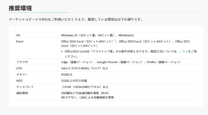 各証券会社が提供している取引ツールの公式推奨スペックを上記の表にまとめました。