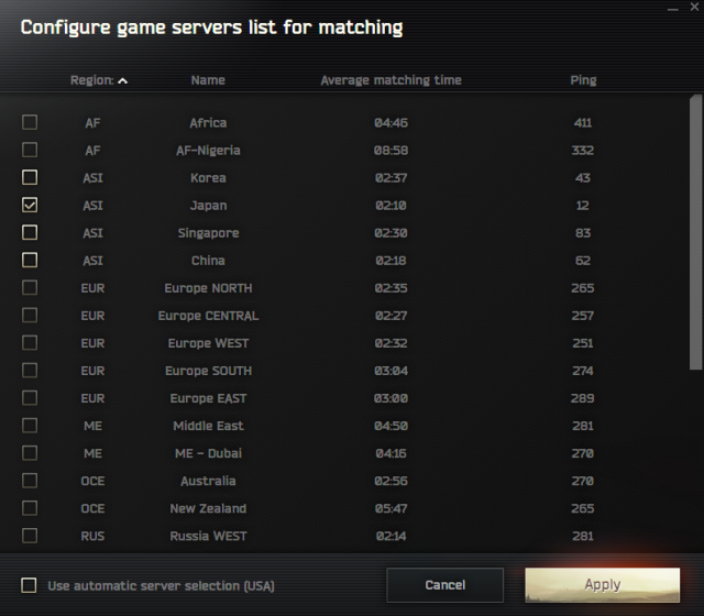 特に応答速度の遅いサーバーでマッチングした場合、Ping値の問題により接続エラーが頻繁に発生する事態にもつながるため、ゲーム起動時には適切なサーバー選択を必ず実施しましょう。