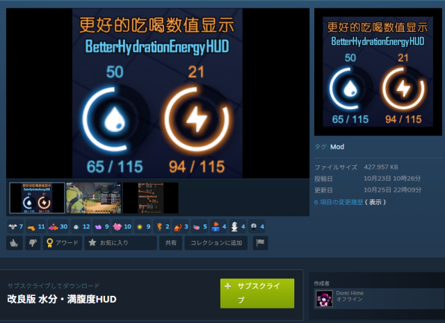 Steamプラットフォームのワークショップからインストール対象のMODを検索し、該当ページの「サブスクライブ」ボタンを選択することで導入できます。