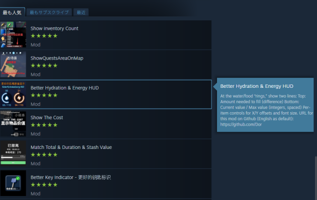 MODの中には互いに干渉し合って正常に動作しなくなるケースもあるため、各MODの説明欄にある注意点も事前にチェックすることを推奨します。