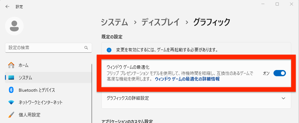 この問題はWindowsの設定調整により解決可能であり、「ウィンドウゲームの最適化」機能を無効化することで改善されます。