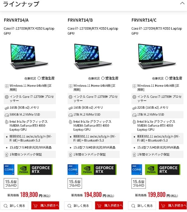 フロンティアはゲーミングPCが主力で、一般向けやノートPCの選択肢が少ないです。