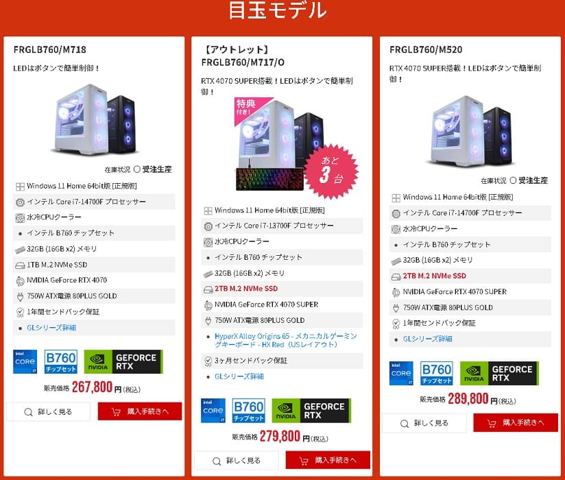 フロンティアは頻繁にセールを行っており、他の大手BTOショップよりもお得にゲーミングPCを購入できます。
