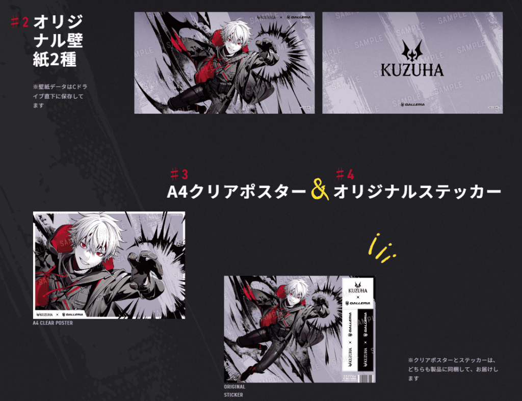 壁紙・A4クリアポスター・ステッカーのすべてに葛葉さんが大きく描かれており、ファンにとってはたまらない内容です。