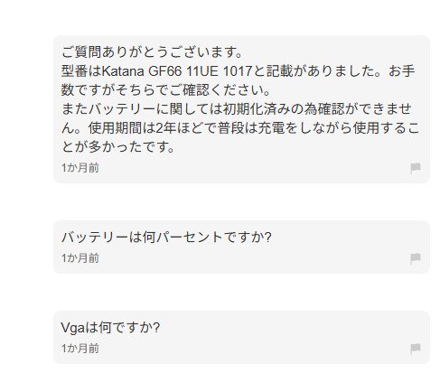 出品者にコメントで質問し、バッテリーの持続時間や充電回数、バッテリー劣化の程度などを確認しておくと良いでしょう。