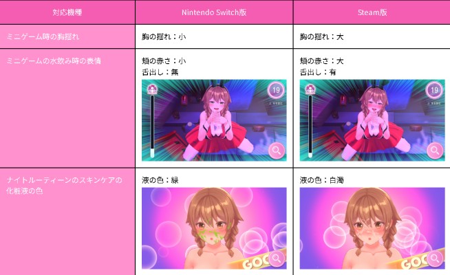 任天堂スイッチ版とPC版では、年齢制限に応じた表現規制の違いがあります。
