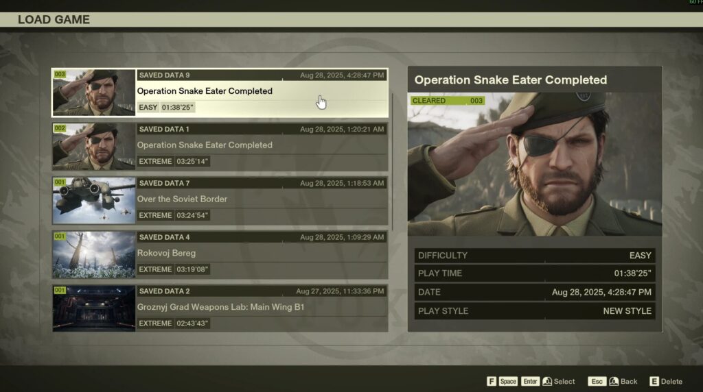 MGS DELTA SAVE SET 100 PERCENT COMPLETION – FOXHOUND – CAMOS – FILM REELSは、『メタルギアソリッド Δ: スネークイーター』のコンプリート要素をすべて解除済みのセーブデータMODです。