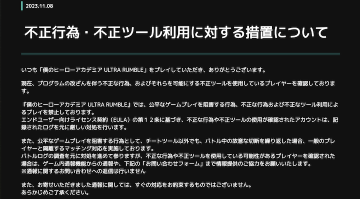『ヒロアカUR』にMODを組み込むことで、アカウント停止やBANが実行される危険性が存在します。