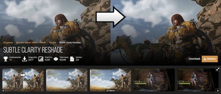 ここからは、人気MODプラットフォーム「Nexus Mods」から厳選した『モンハンワイルズ』用の優良MODをご紹介します。