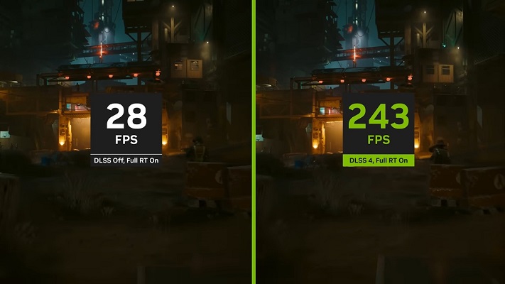 NVIDIA独自の画像生成技術であるDLSS 4は、ゲーム映像を低解像度で処理した後、AIが高精細な画像に補完する革新的な技術です。
