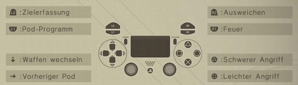 DualShock4 (PS4) Buttonsは、『ニーアオートマタ』のゲーム内ボタン表示をPS4コントローラー仕様に変更するUI系MODです。