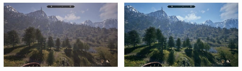 色調や明暗のコントラスト、照明効果などを調整することで、デフォルトの見た目よりもさらに没入感のある世界を体験できます。