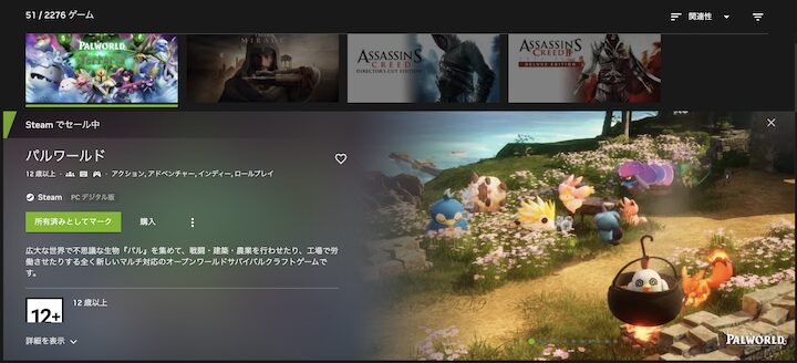 GeForce Nowを利用することで、NVIDIAのサーバーを経由してMacでも『パルワールド』をプレイできます。