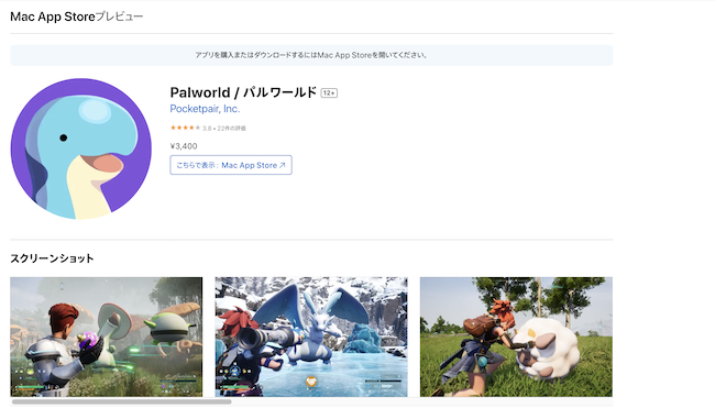 App Storeから、Mac向けパルワールドをダウンロードできます。