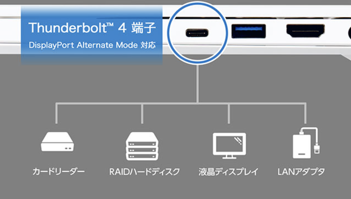 Thunderbolt 4接続対応により外部機器との高速通信が実現