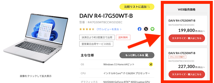 デスクトップPCと比較すると同スペックでも価格は上昇しますが、省スペース性や携帯性を重視する場合は魅力的な選択肢となります。