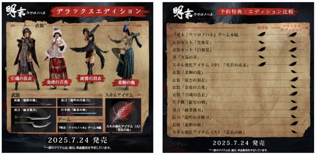 明末 ウツロノハネのデラックスエディションと通常版にはどのような違いがありますか?