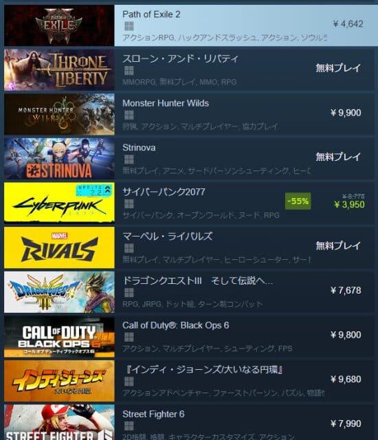10万円台前半のエントリーモデルでも動作は可能ですが、高画質設定での60FPS維持は難しくなります。